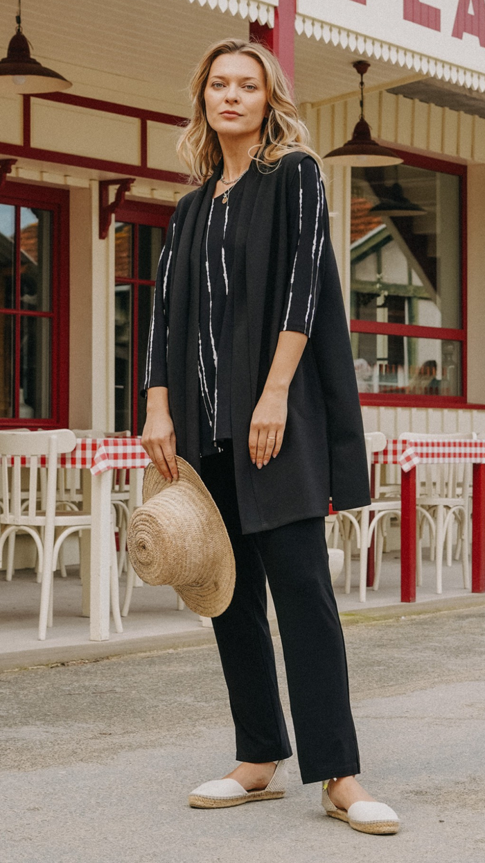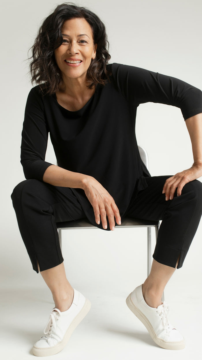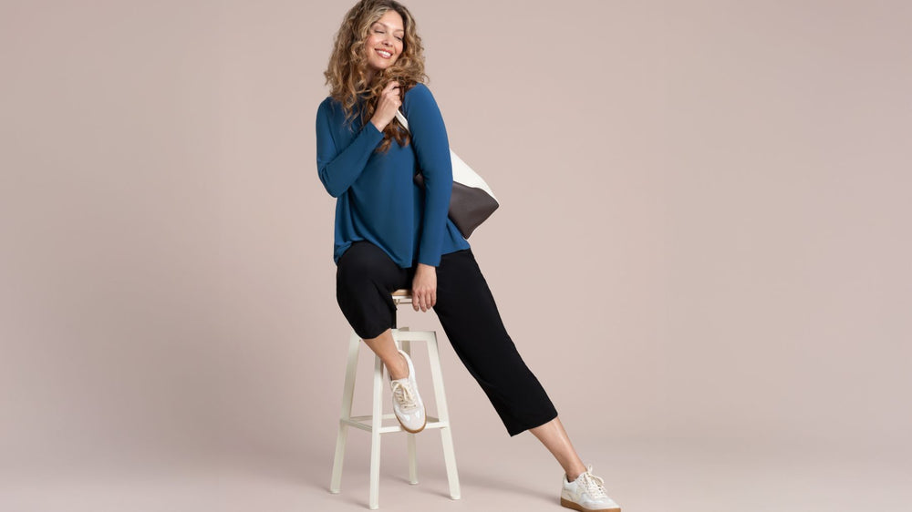 Timeless, soft and light, comfortable and flattering. As with all my Sympli pieces they never go out of style. Very happy with my purchase.