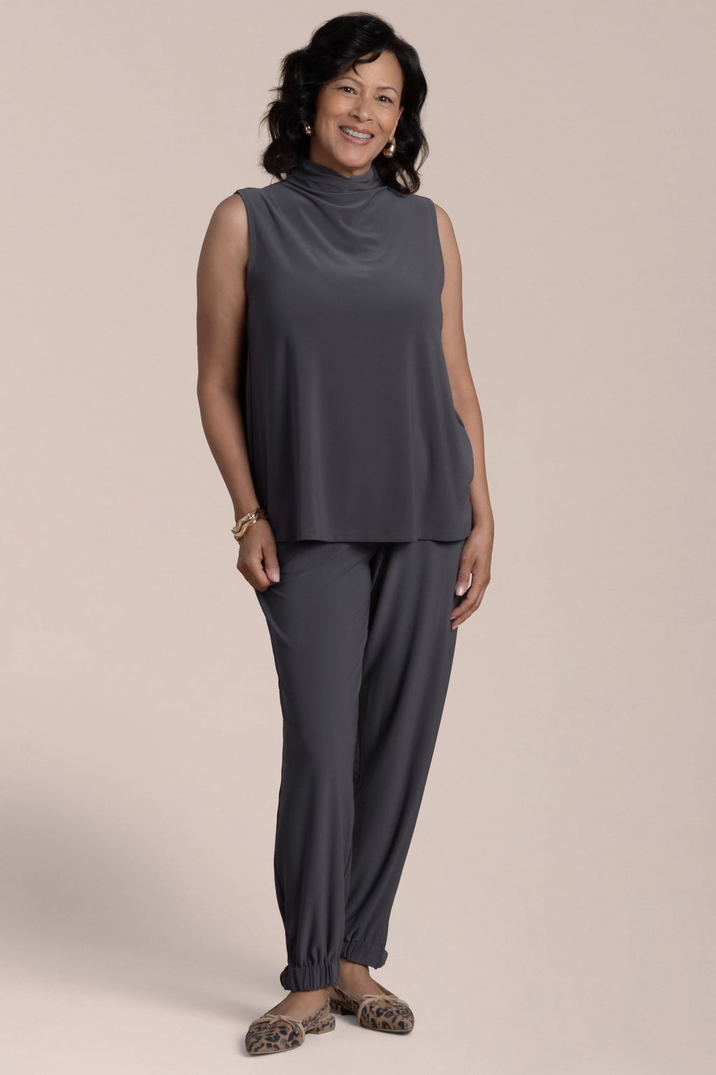 - Functional side pockets add ease without adding bulk.