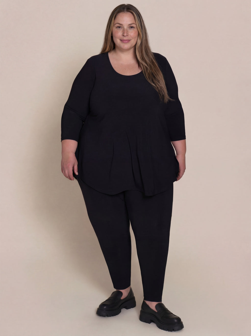 Crafted from soft, breathable jersey fabric with just the right amount of stretch, it moves with you while maintaining its shape. The 26" inseam hits at the ankle for a modern, versatile fit that pairs effortlessly with tunics, tees, and layers.