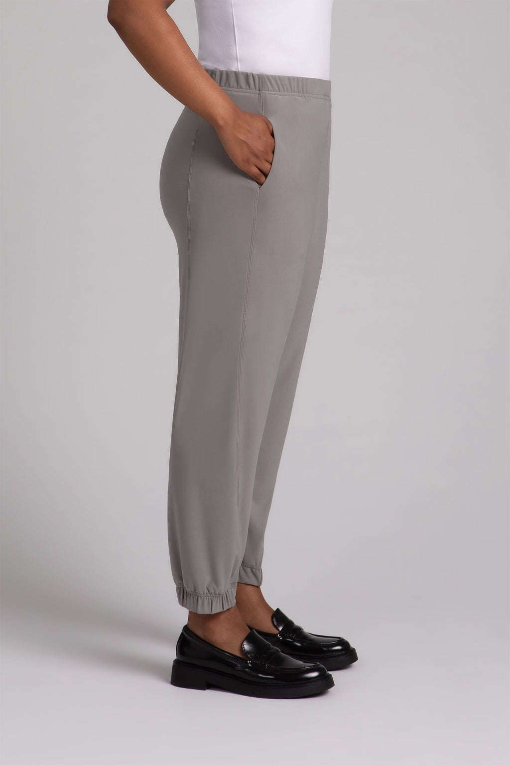 Designed for comfort and confidence, its elastic waistband and cuffs, with side pockets ensure practicality without sacrificing style.
