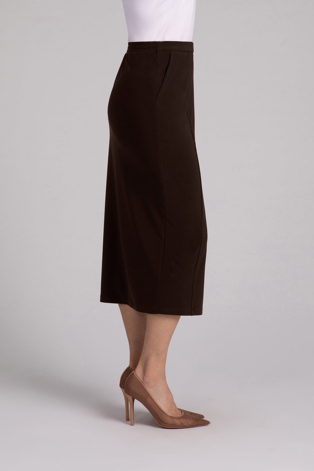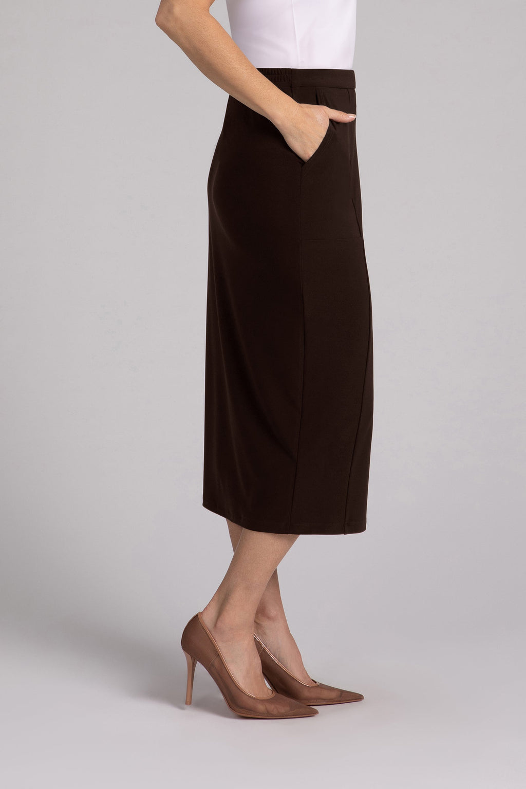 Inspired by Kate Hepburn's timeless style, the Hepburn Skirt features side pockets and a slightly tapered hemline with a front slit for easy movement. The panelled design adds elegant detail, making it a versatile piece perfect for any occasion.