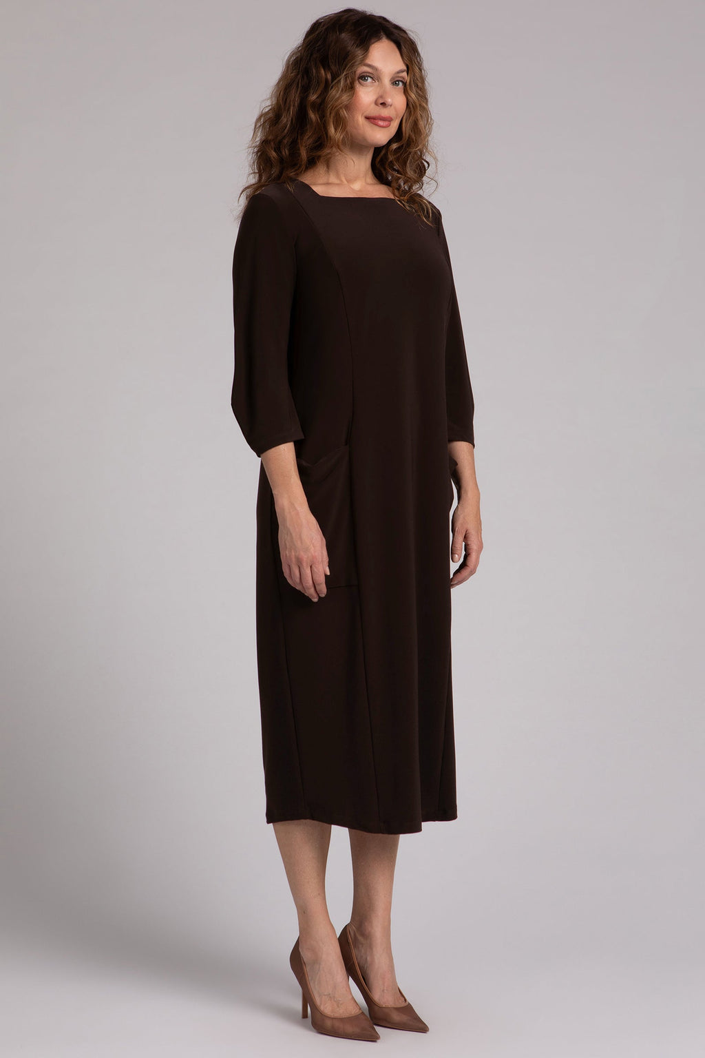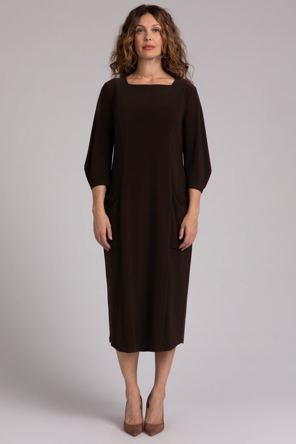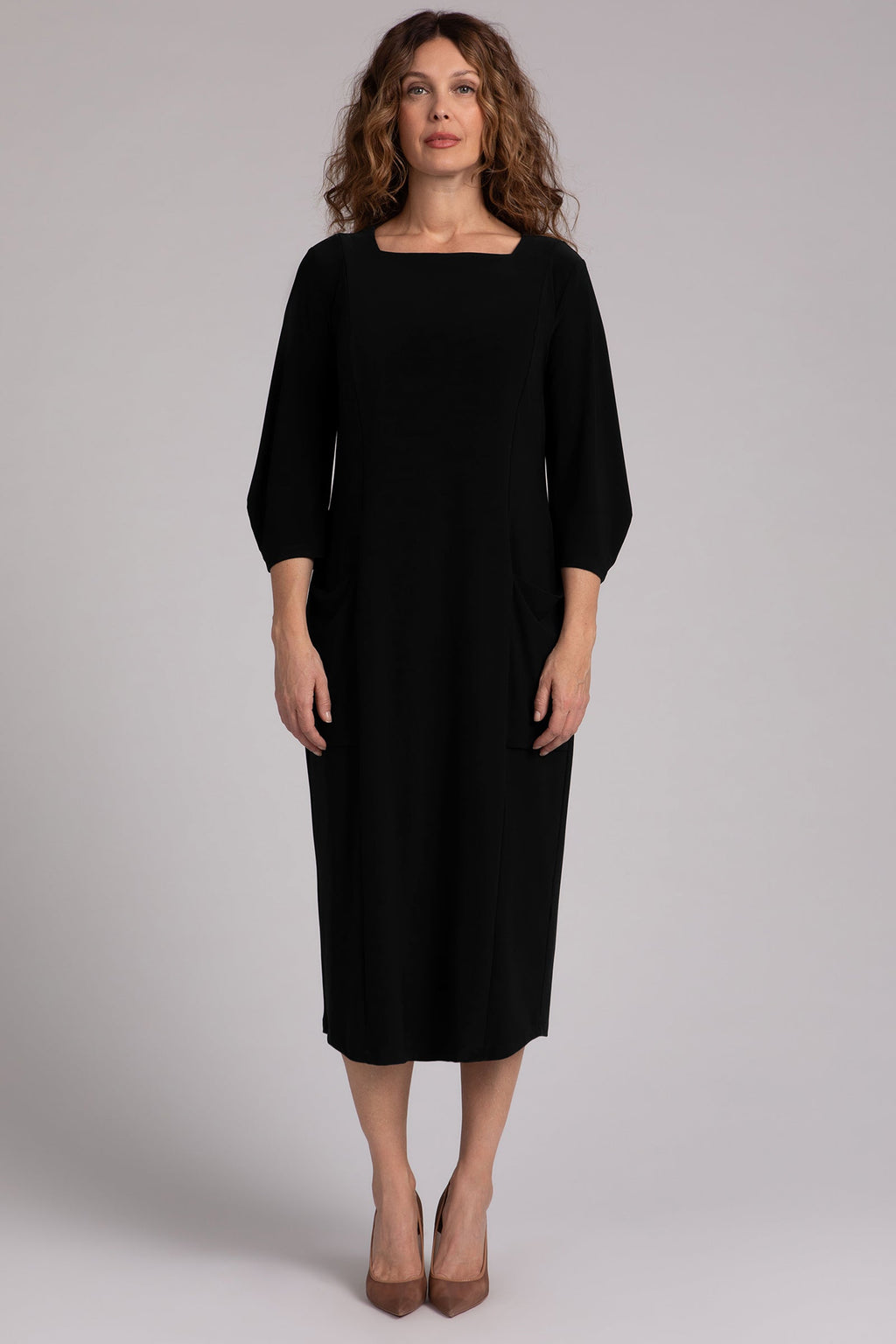 The Lantern Column Dress features lantern-detail The Lantern Column Dress features lantern-detail sleeves, a square neckline, and princess seams for a refined silhouette. Complete with functional pockets.
