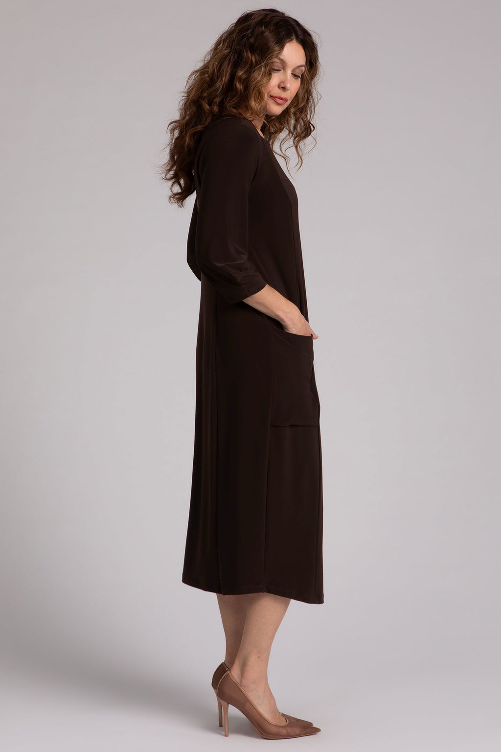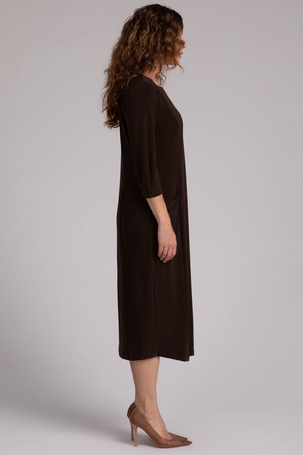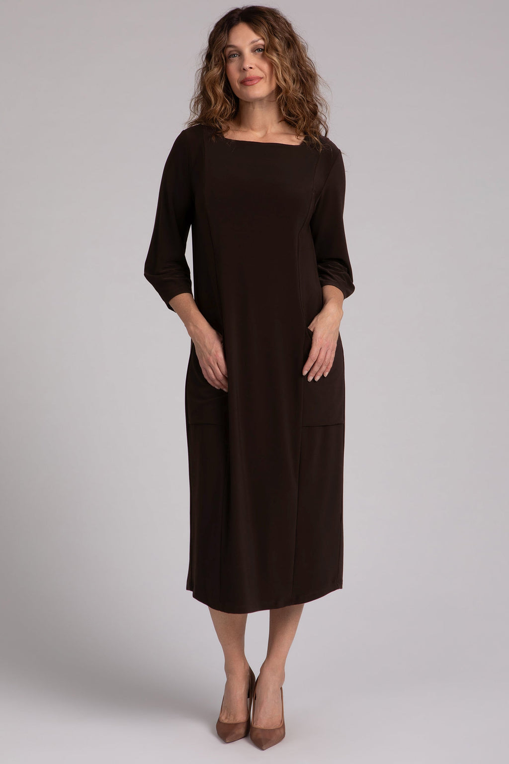 The Lantern Column Dress features lantern-detail The Lantern Column Dress features lantern-detail sleeves, a square neckline, and princess seams for a refined silhouette. Complete with functional pockets.