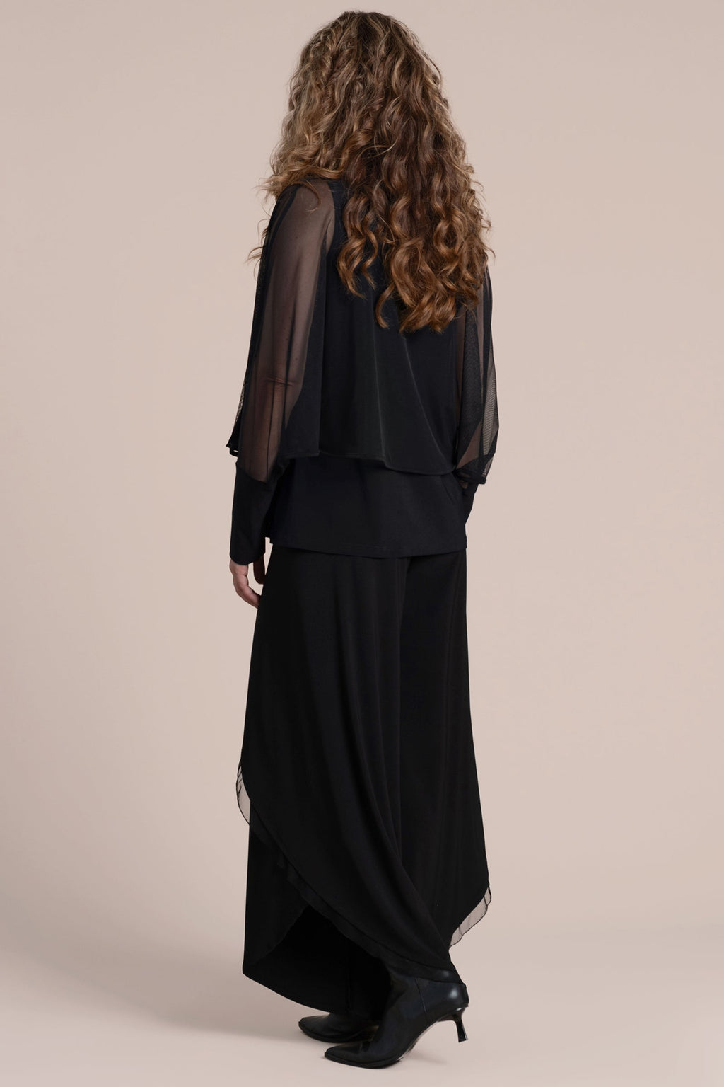 Add a touch of drama to any look with the Barely Hey Honey Shrug. This sheer piece features airy mesh sleeves and a fluid drape that moves effortlessly with the body. Jersey trim along the lapel and sleeve cuffs adds contrast and structure, making it the perfect statement piece for evening dressing or elevated everyday style.