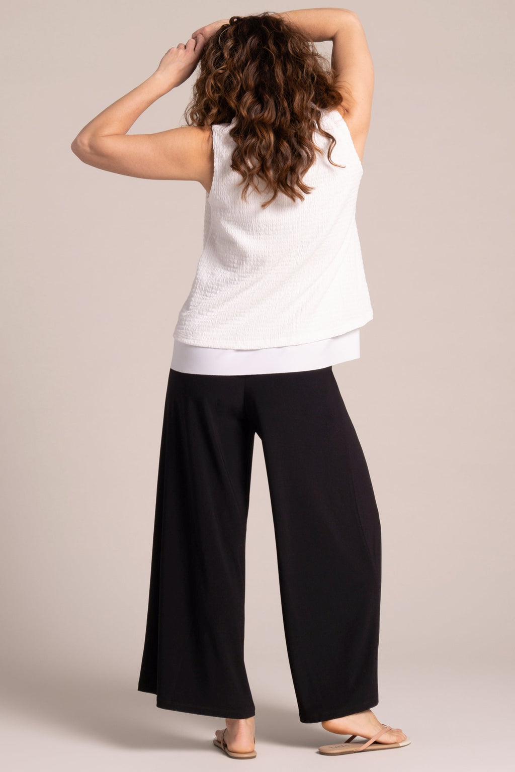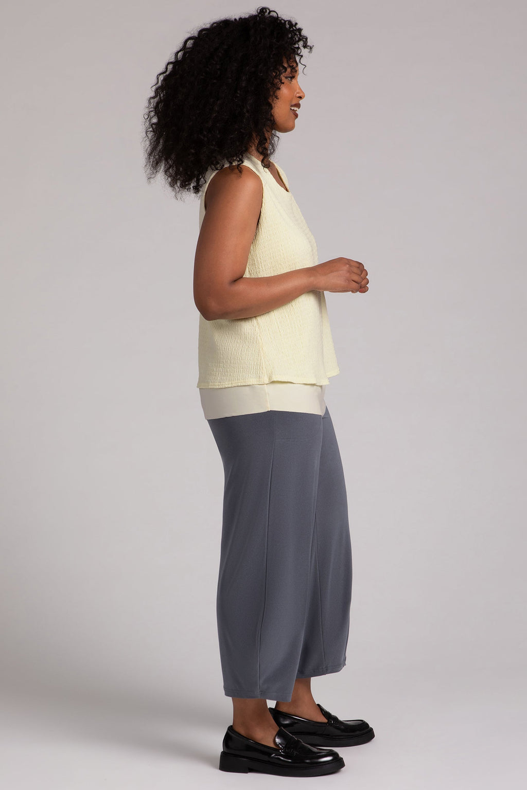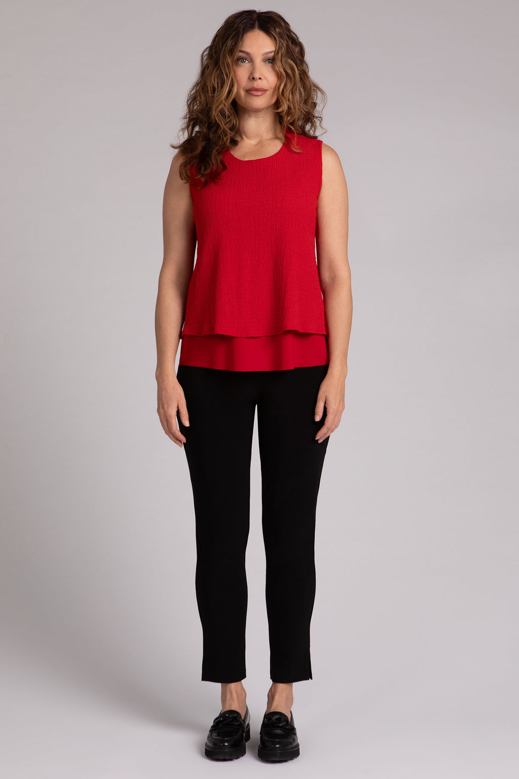 Our Sleeveless Double Layer Shell in Popcorn Waffle offers versatility and style. Fully lined with jersey, it features a clean finish on the scooped neckline. Ideal for layering under a cardigan or blazer, or as a standalone piece paired with any bottoms.