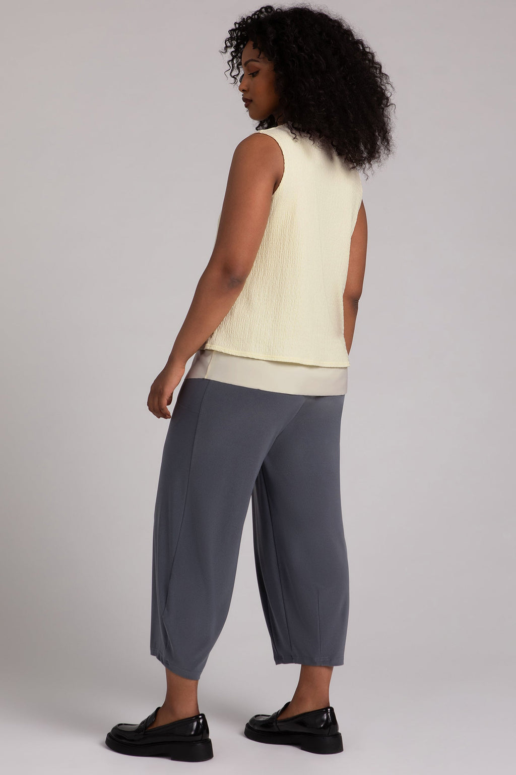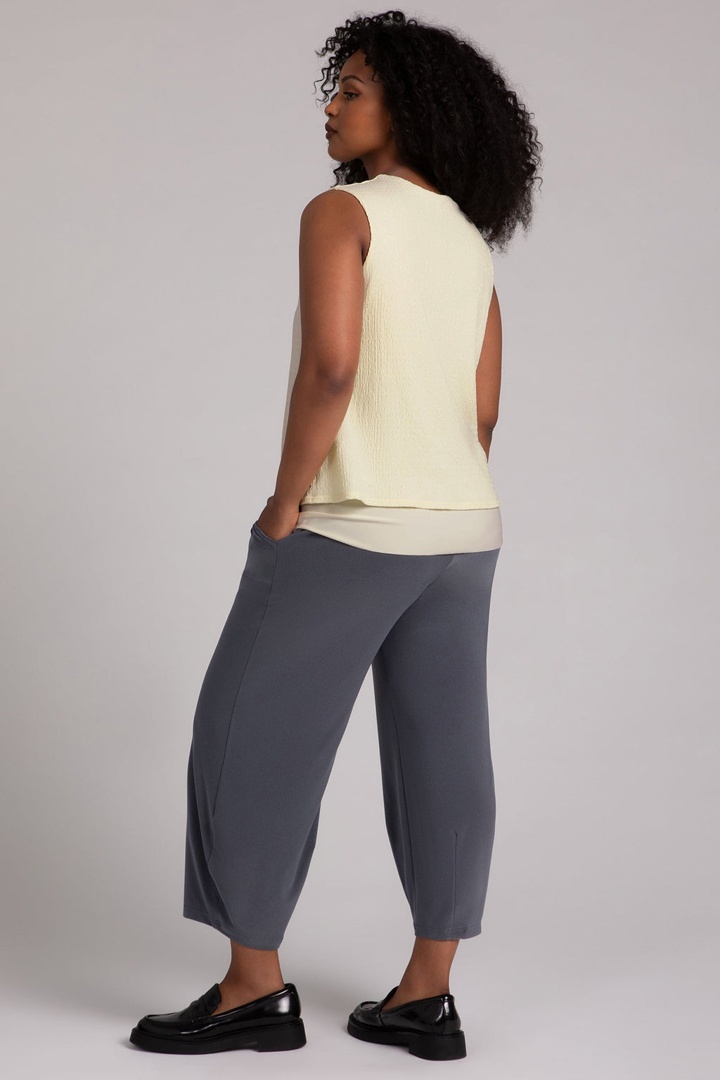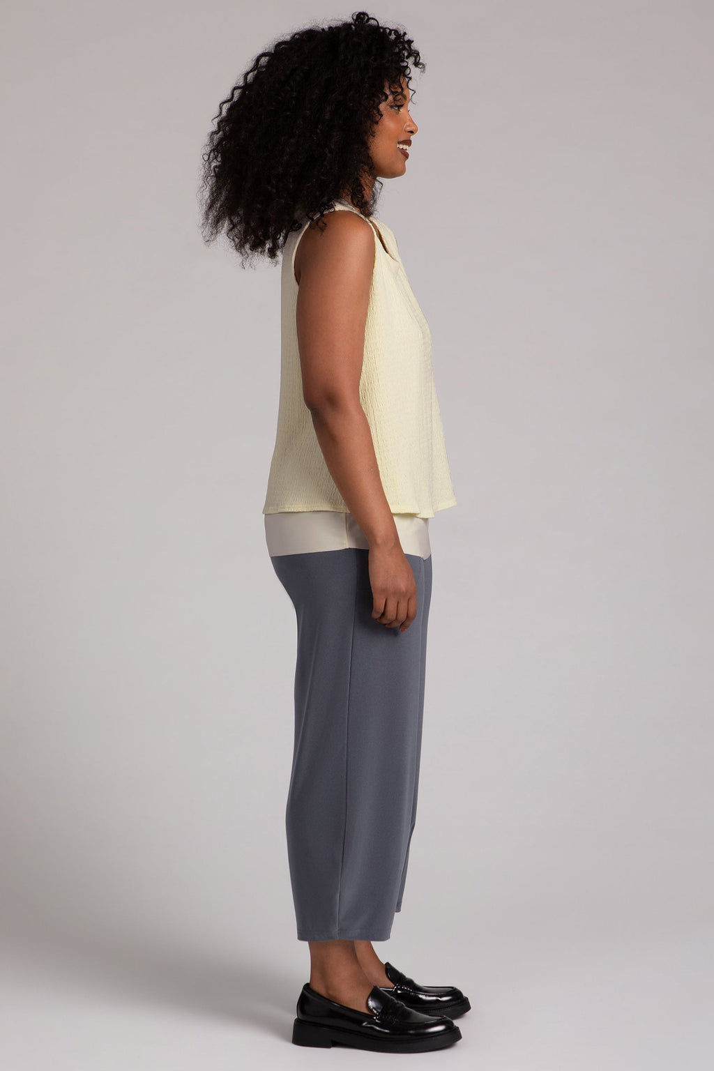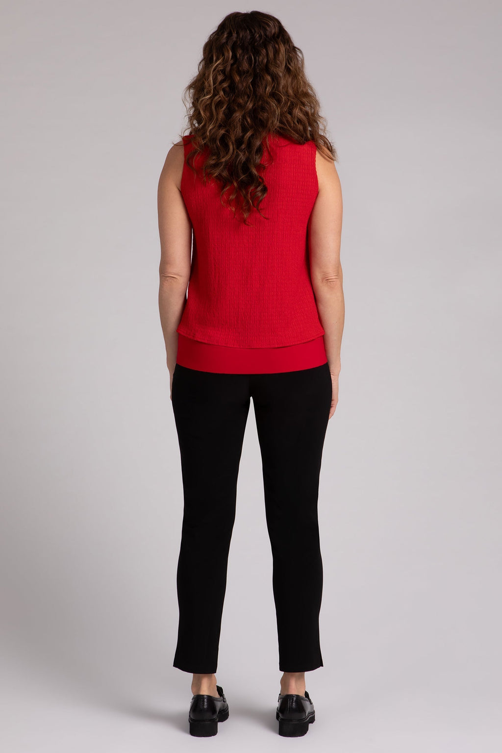 Our Sleeveless Double Layer Shell in Popcorn Waffle offers versatility and style. Fully lined with jersey, it features a clean finish on the scooped neckline. Ideal for layering under a cardigan or blazer, or as a standalone piece paired with any bottoms.