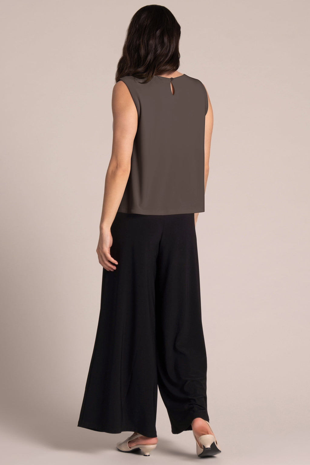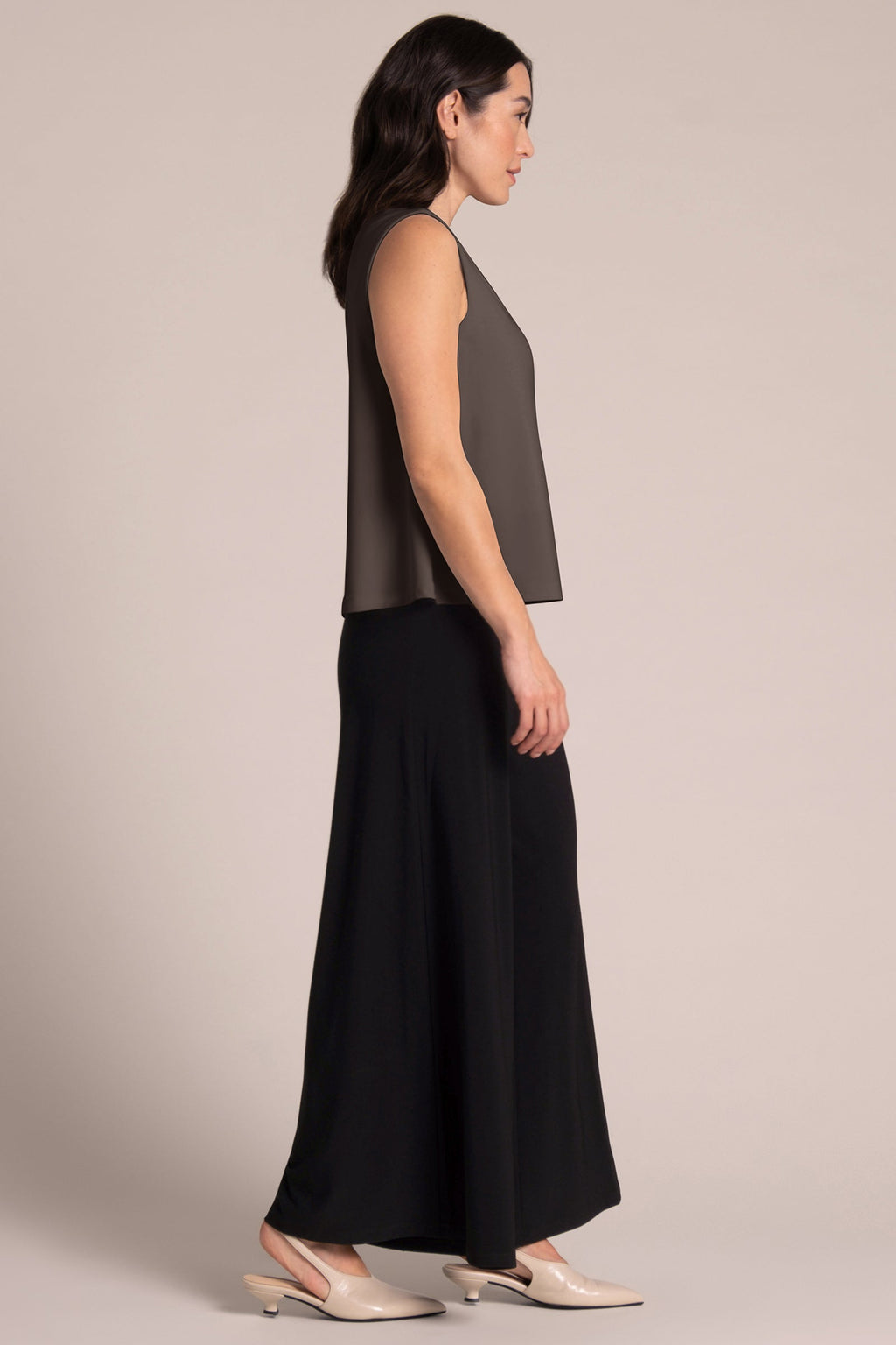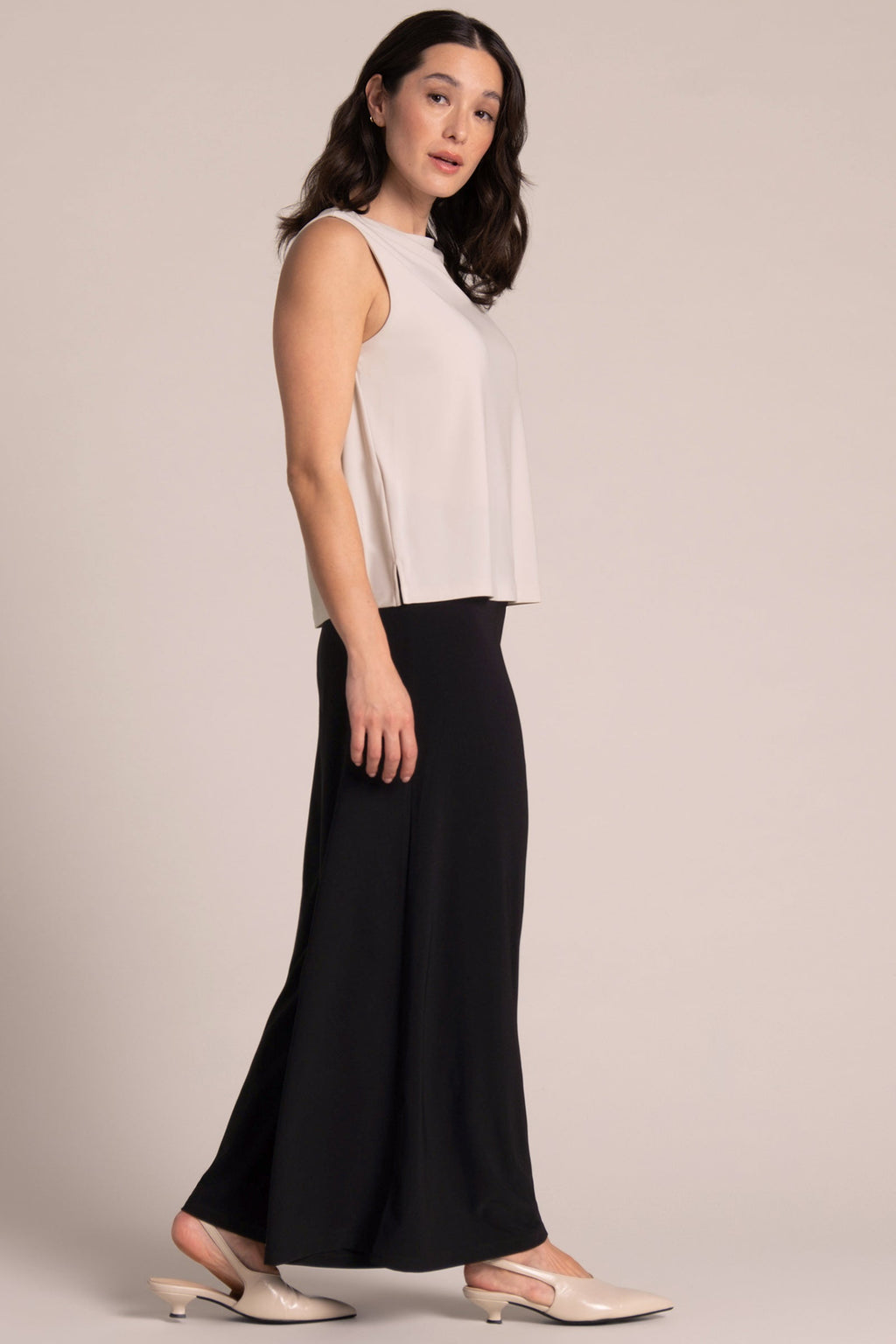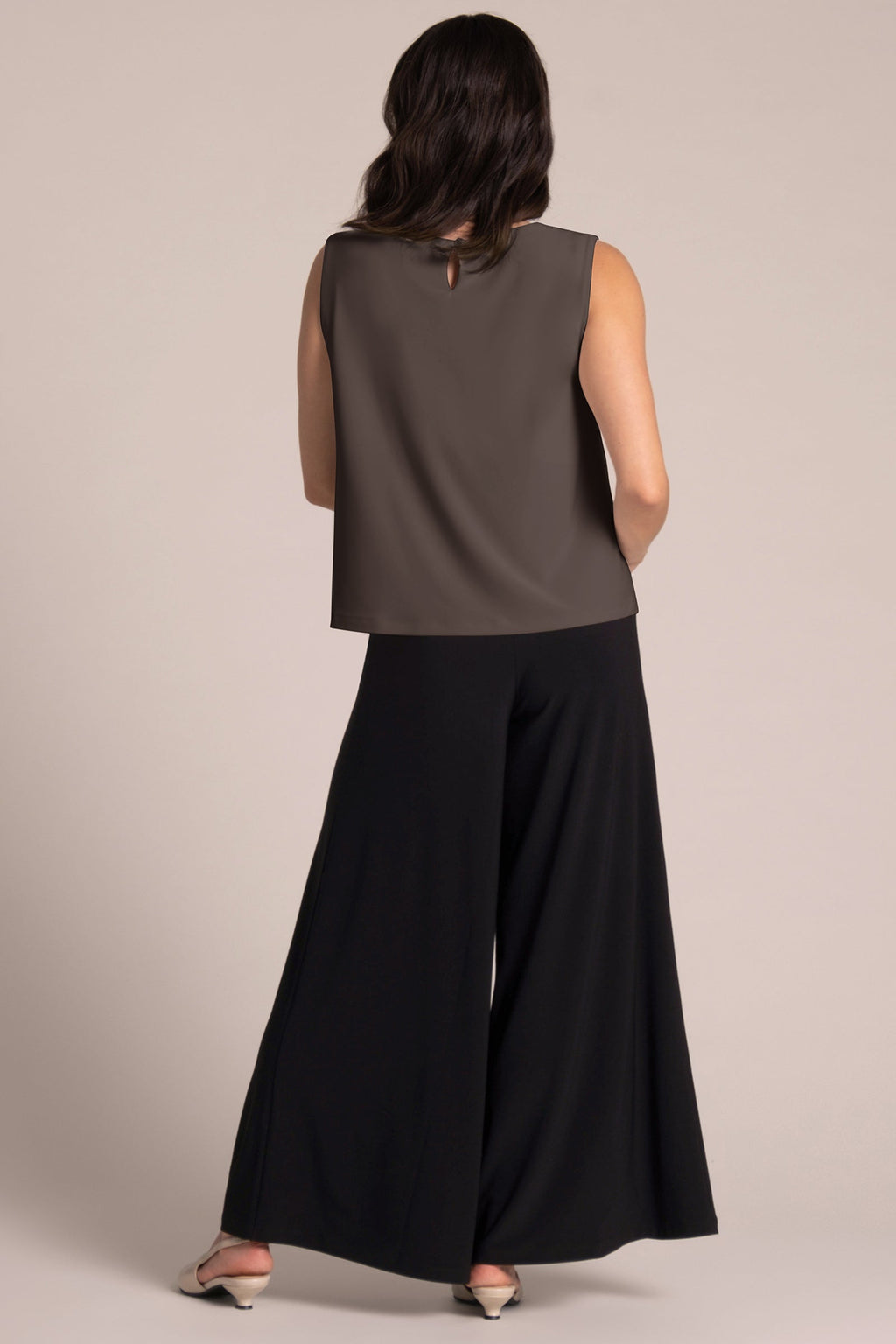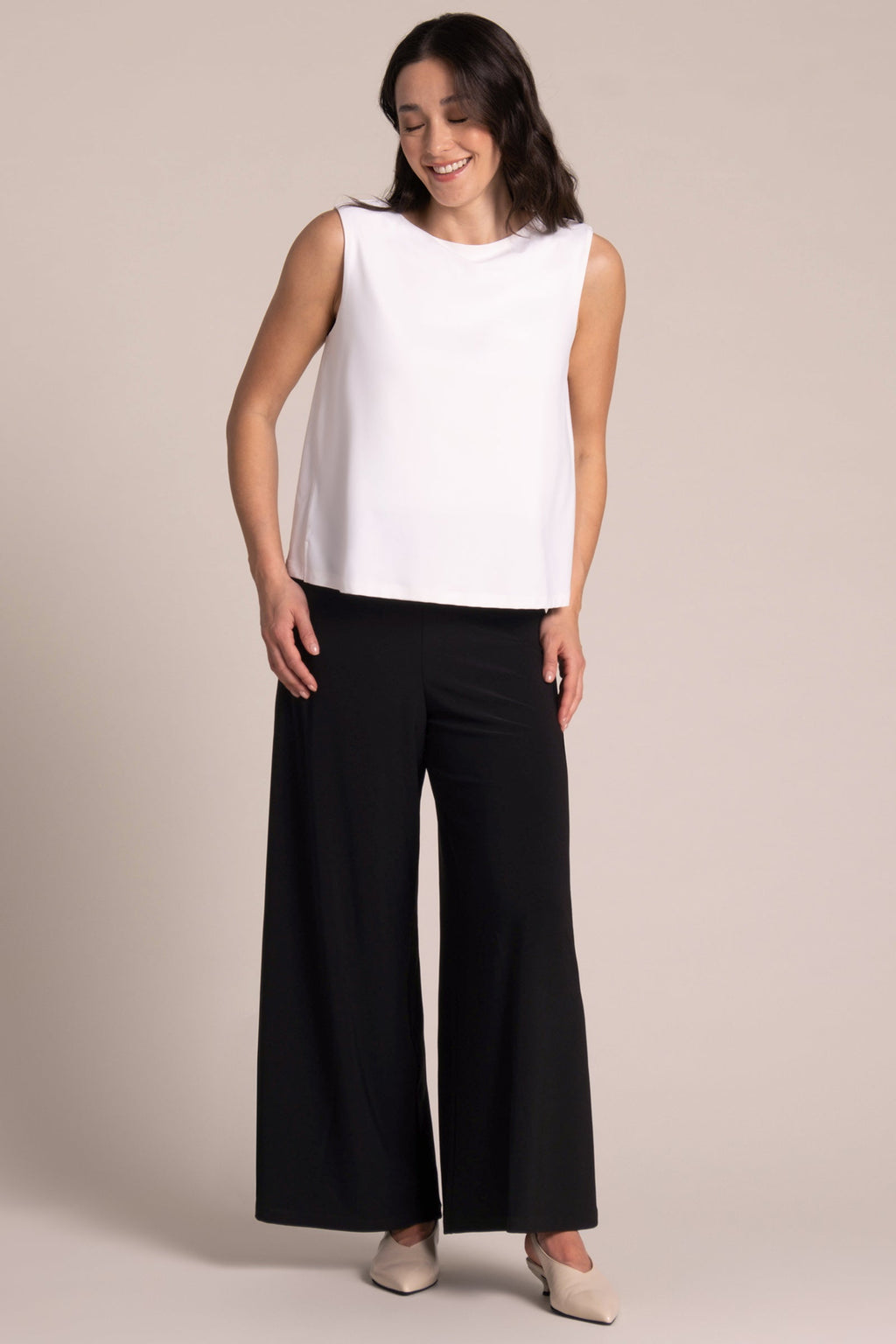 The Flared Shell features a flattering boat neckline, relaxed, boxy fit, and the added comfort of being double-lined in the front and back. This tank pairs seamlessly with wide leg pants for a casual sophisticated ensemble.