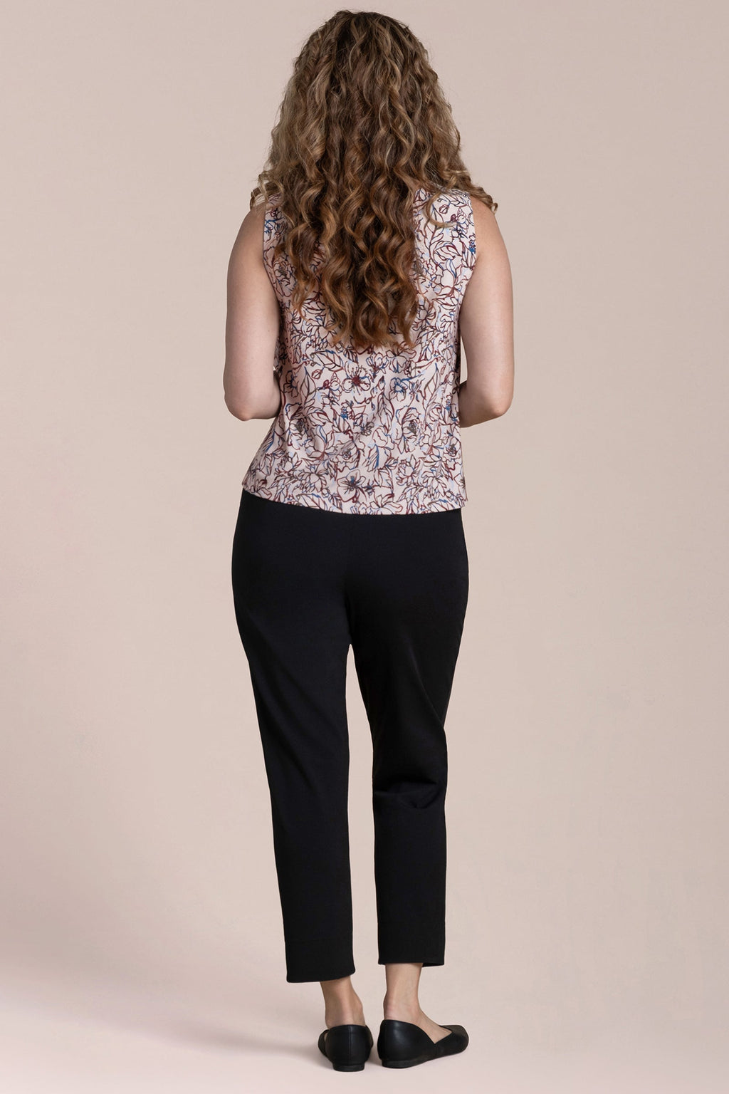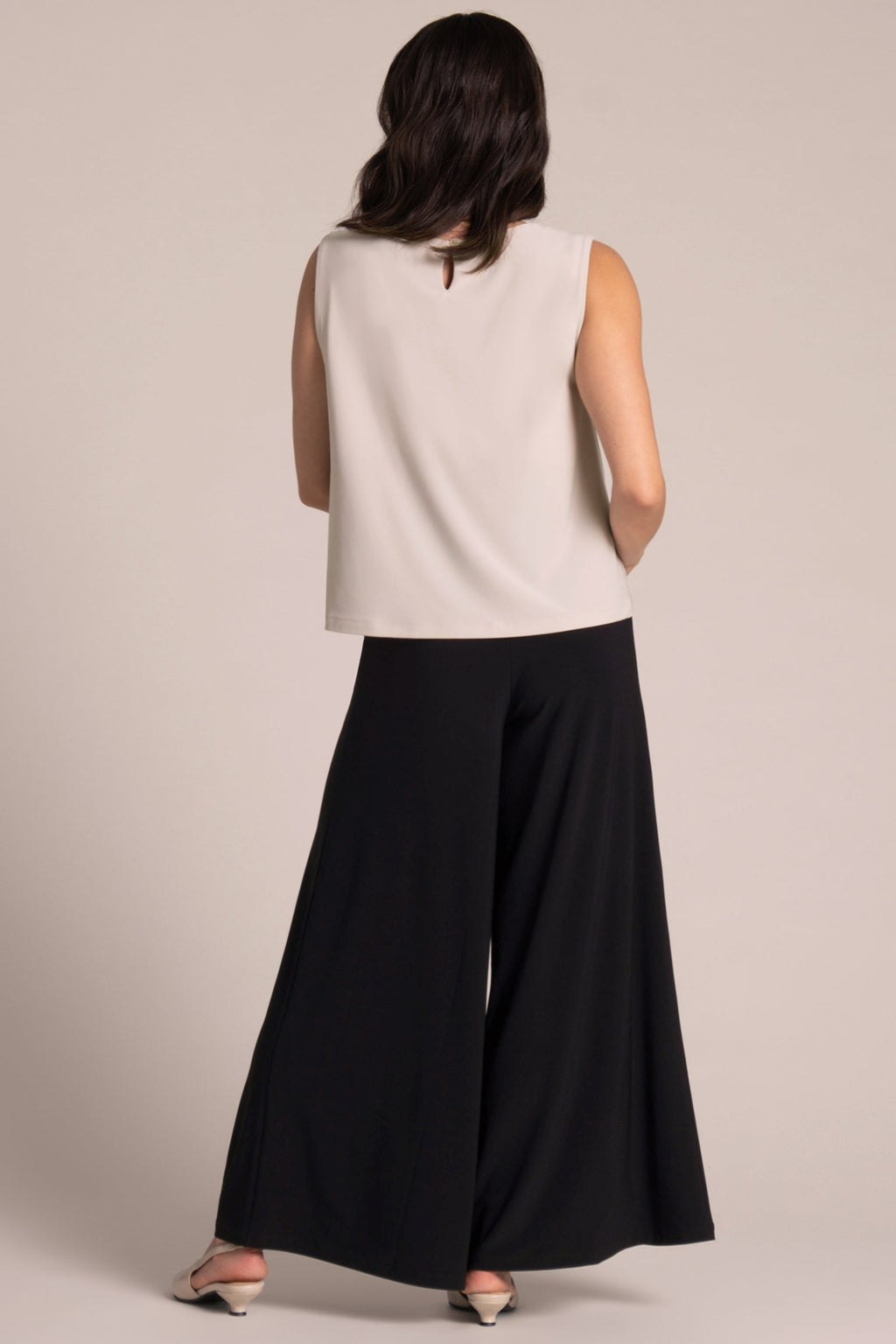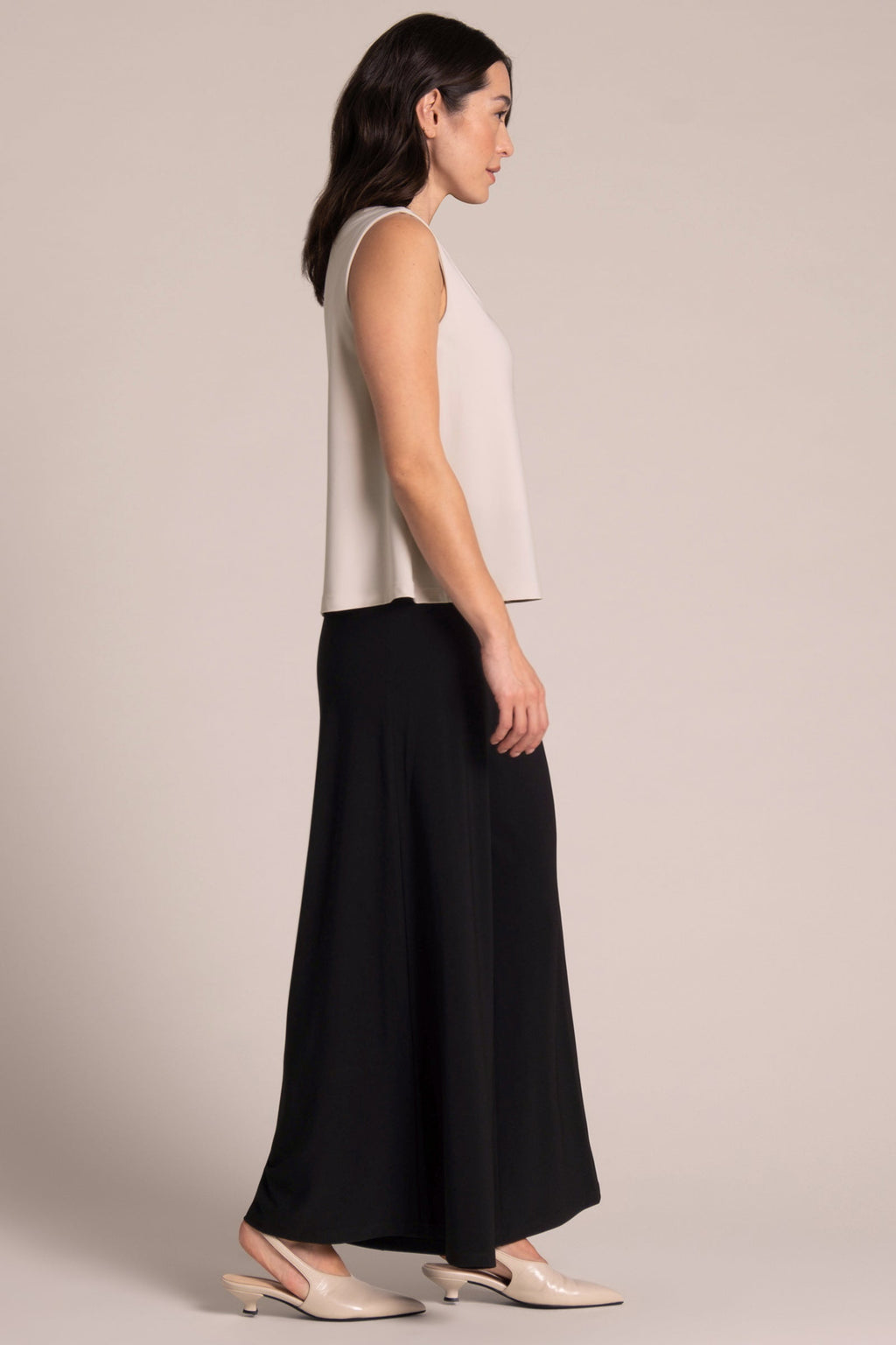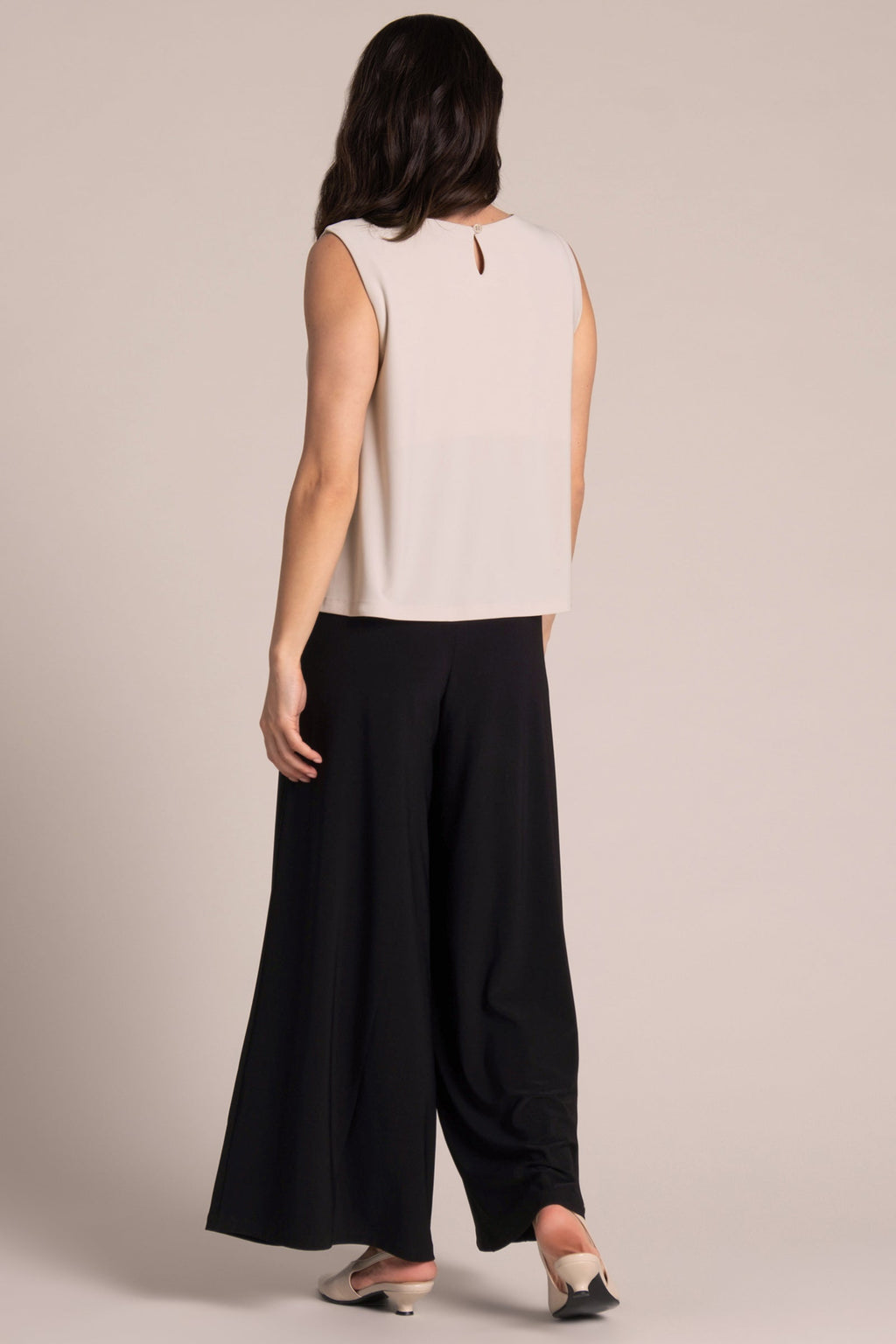 The Flared Shell features a flattering boat neckline, relaxed, boxy fit, and the added comfort of being double-lined in the front and back. This tank pairs seamlessly with wide leg pants for a casual sophisticated ensemble.