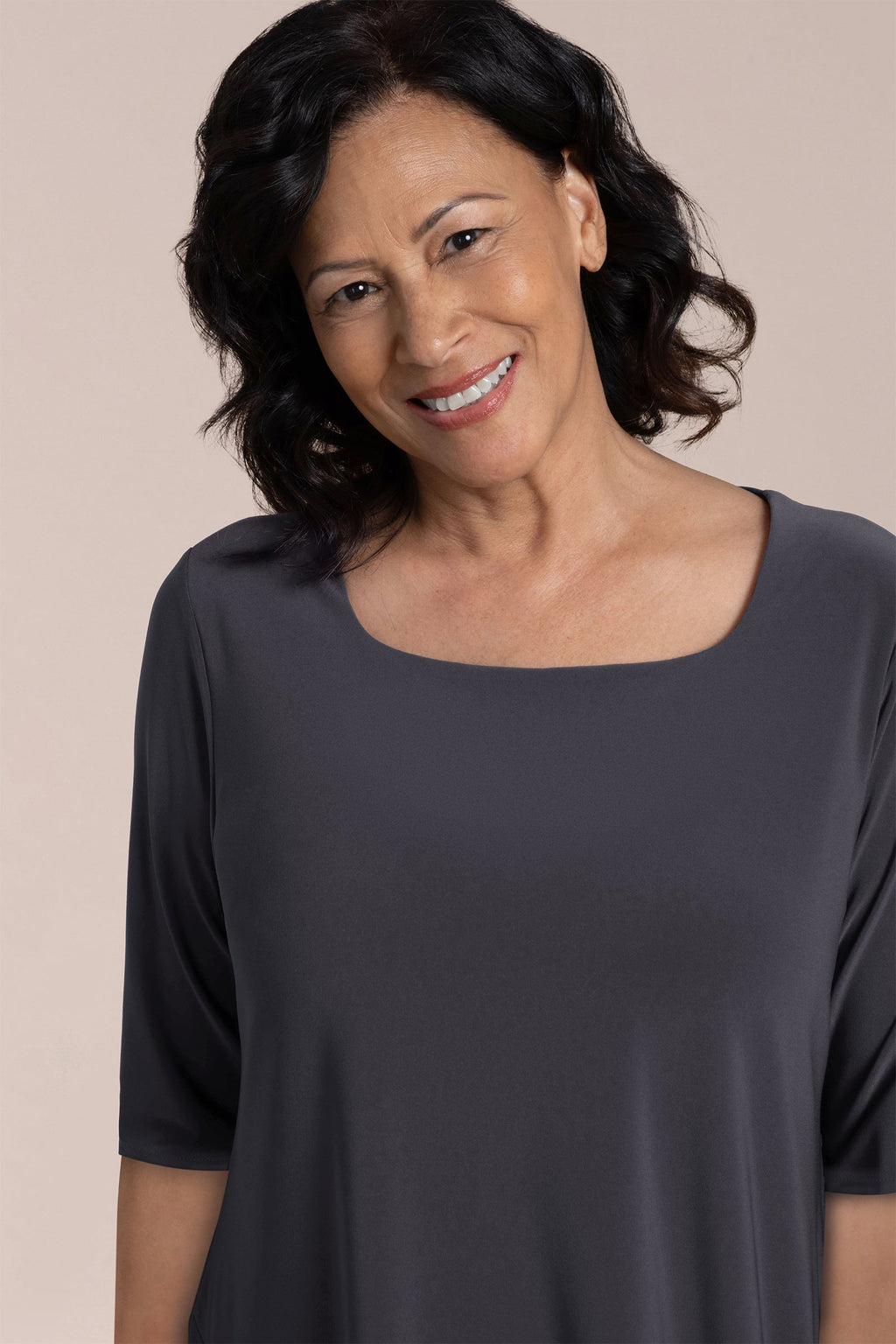 Crafted with a distinctive square neckline, this top is uniquely constructed with a double-layered front to ensure maximum coverage and a polished look.