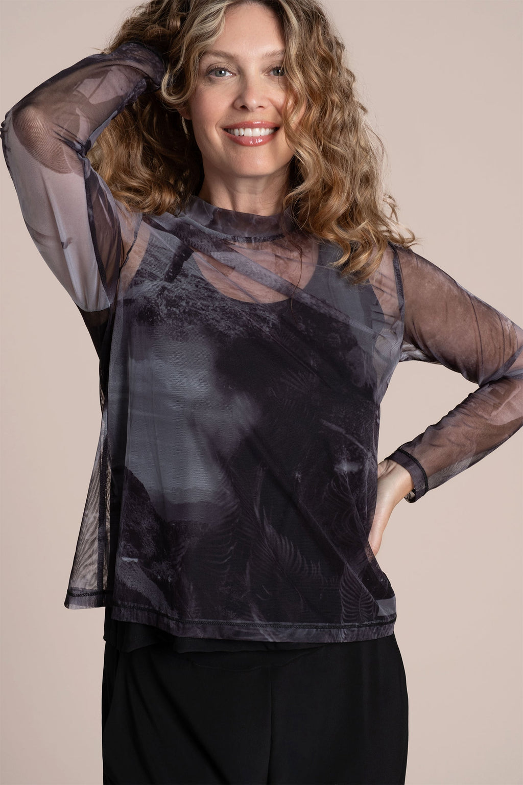 Minimalism meets modern edge in the Barely Mock Neck Top. Crafted from whisper-light mesh, this sheer essential layers beautifully over tanks and under sleeveless styles. The softly structured neckline and full-length sleeves add polish, while side slits enhance ease of movement. It's the go-to piece for understated sophistication, day or night.