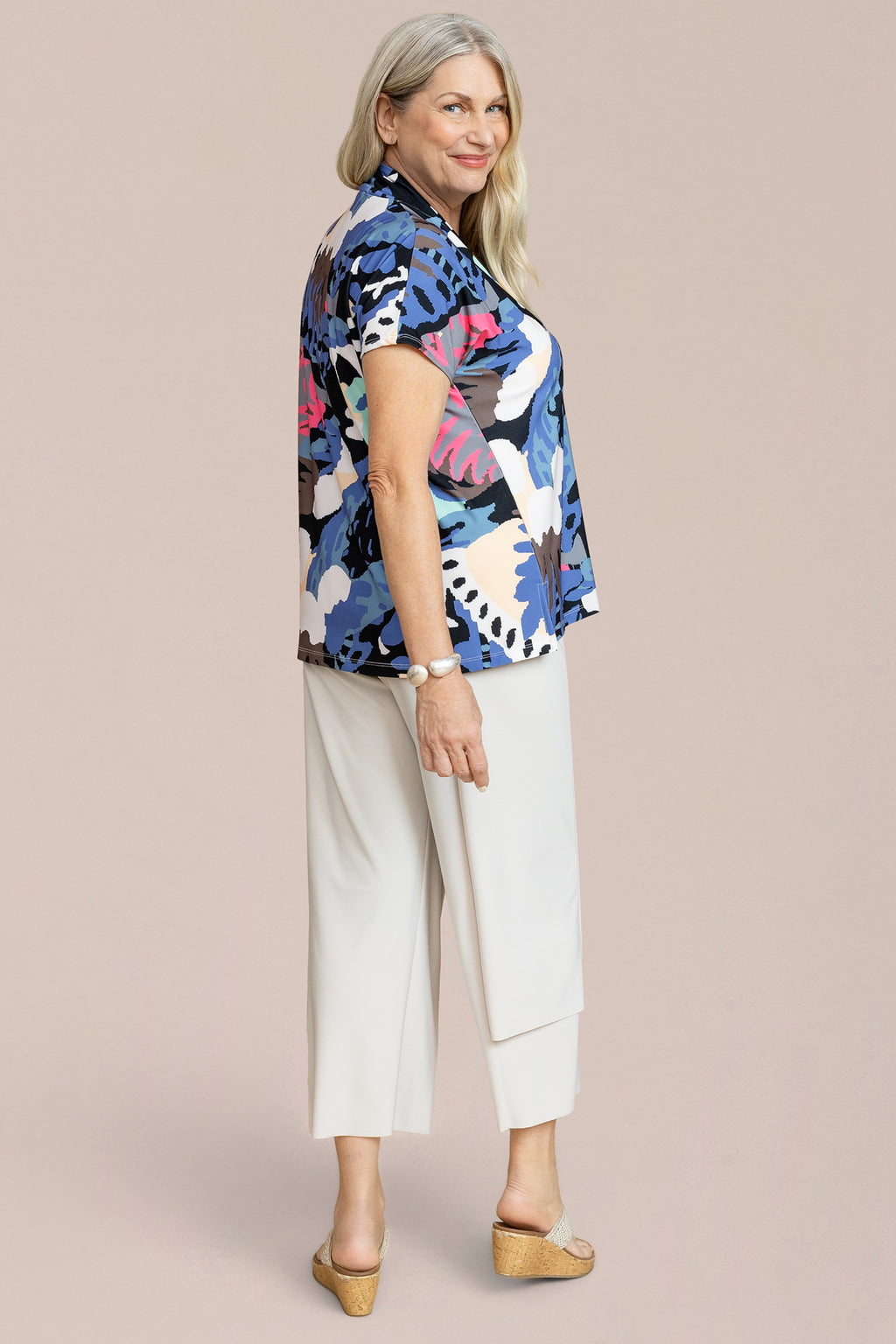 Easy, confident, and endlessly wearable, the Deep V Top, Print Short Sleeve is designed to stand out through silhouette rather than detail. With its flattering deep V-neckline and relaxed, boxy shape, this top offers a breezy fit that feels polished yet effortless. A versatile warm-weather staple, it pairs just as easily with tailored pants as it does with casual separates.