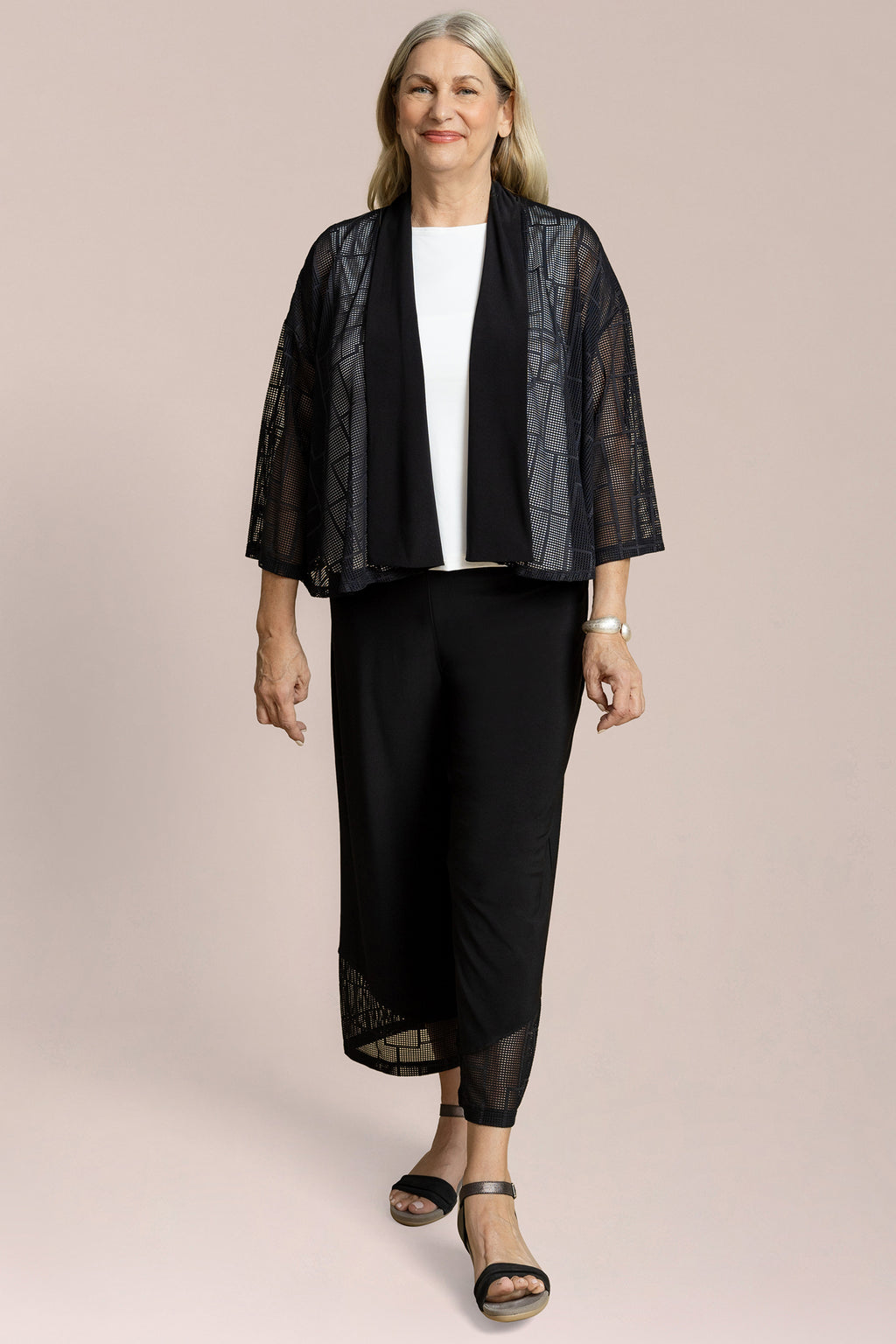 Lightweight and sculptural, the Honeycomb Mesh Mezza Luna Cardigan brings an airy layer of texture to any look. Its softly draped, open-front silhouette adds movement and dimension, making it an effortless finishing piece over tanks, dresses, or sleeveless tops.
