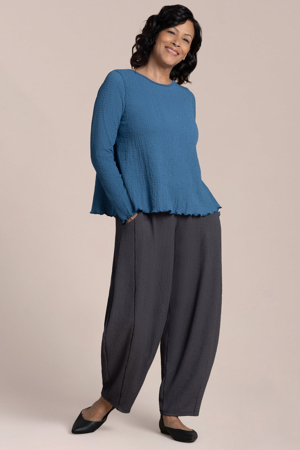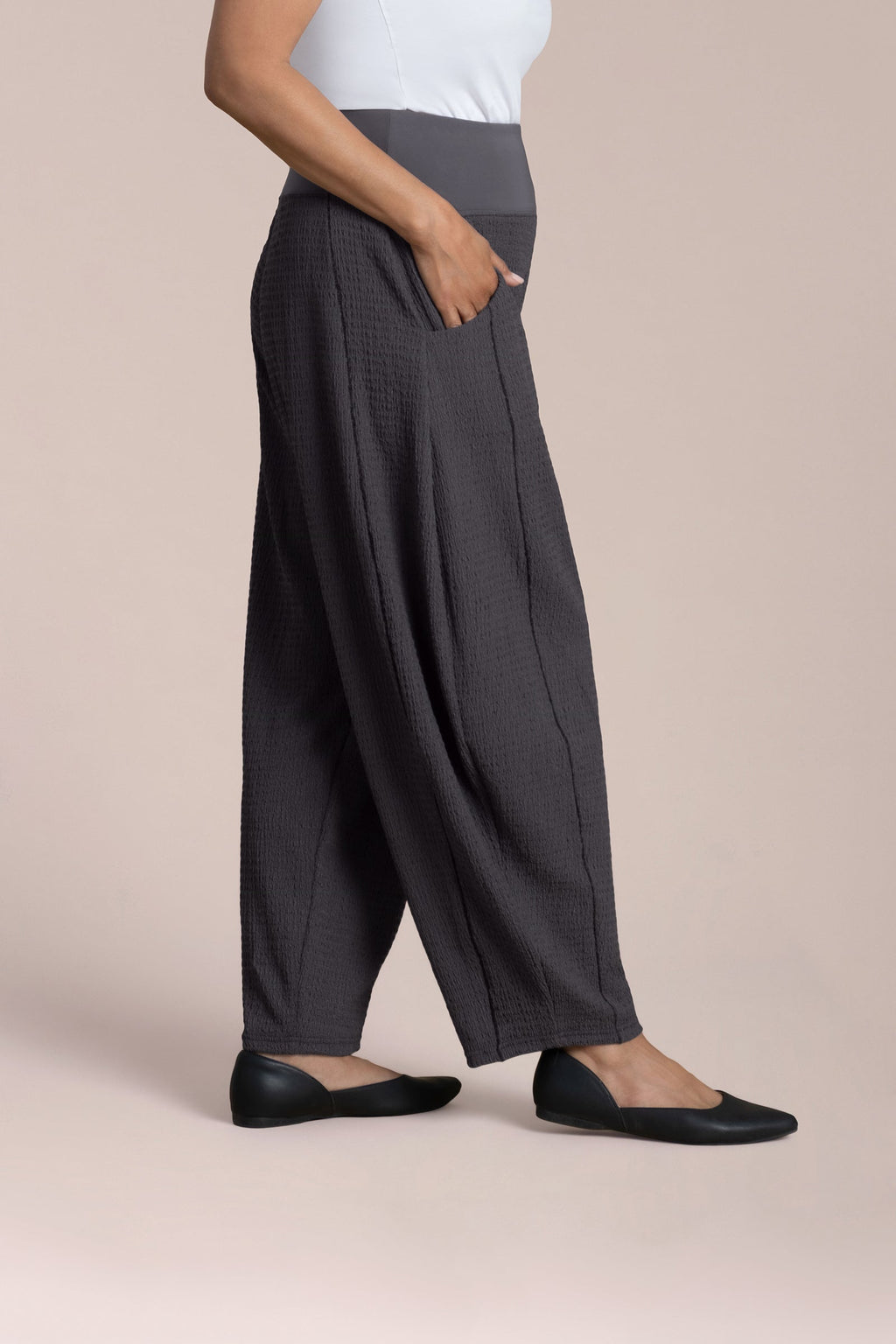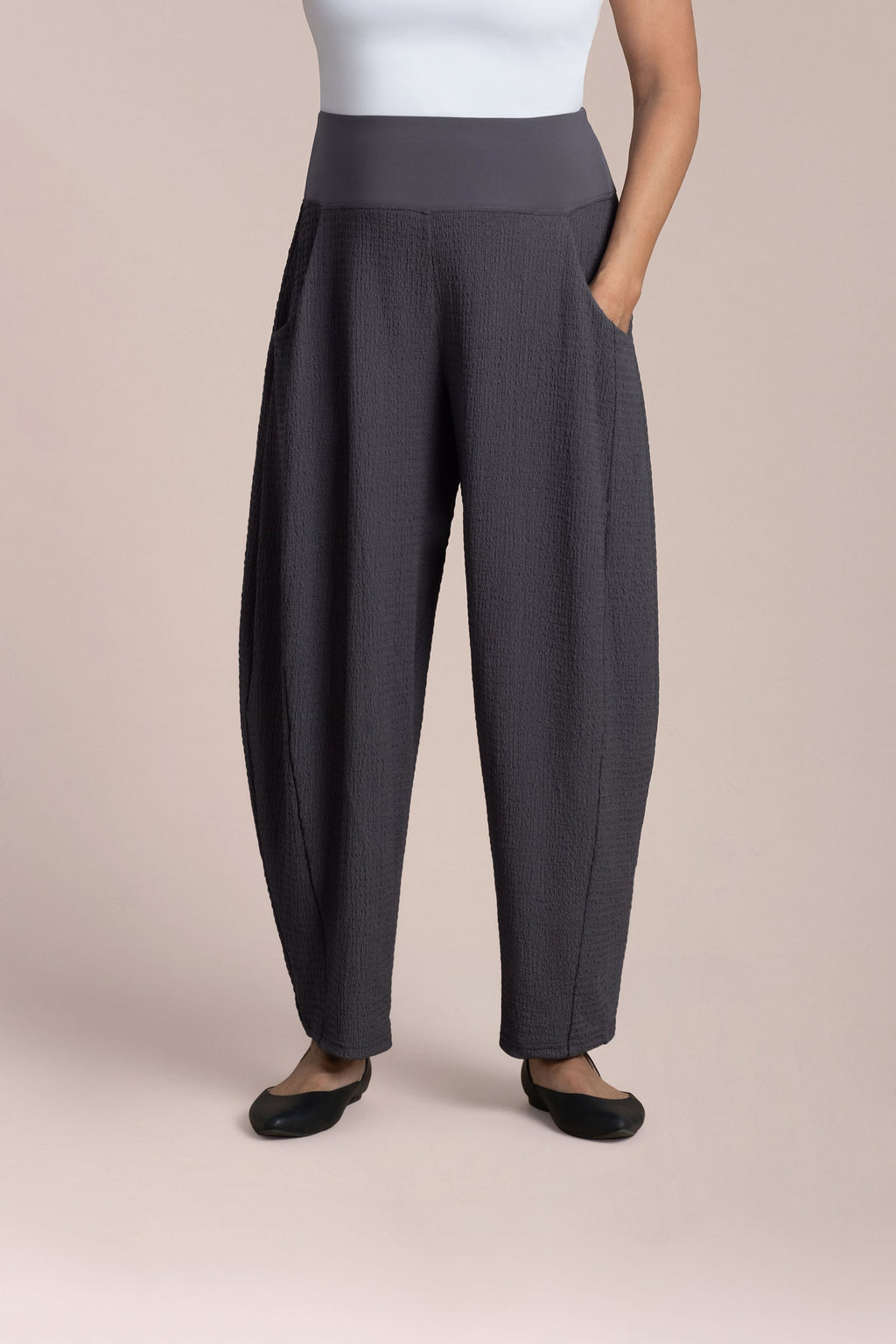 A modern update on a relaxed classic. The Pop Collage Narrow Barrel Pant offers the comfort of a wide leg with a softly structured shape. The contoured waistband smooths the silhouette, while the textured fabric adds subtle dimension. Designed for everyday ease with elevated simplicity.