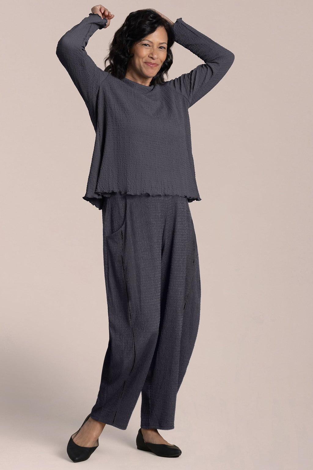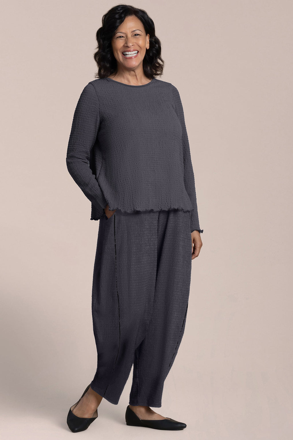 • Made in our popcorn waffle knit.
