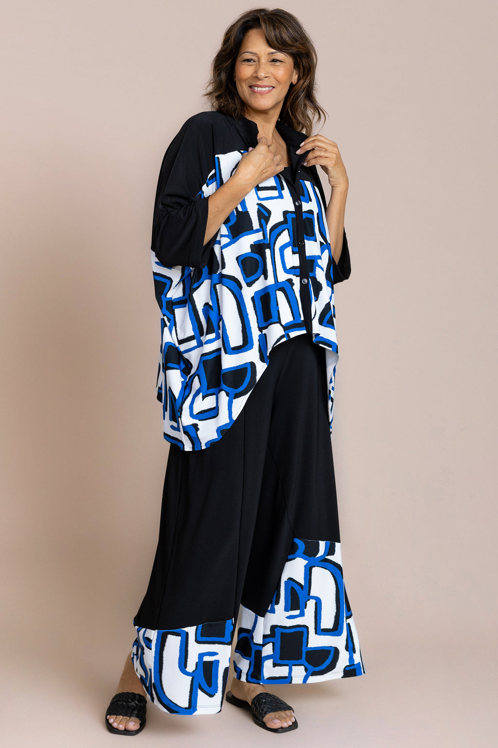 Fluid and expressive, the Serena Shirt, Blocked Print is designed to move with you. An open, draped silhouette creates a relaxed elegance, while the blocked design adds dimension and visual balance without feeling busy. Lightweight and easy to layer, this piece brings an artful, modern feel to everyday dressing.
