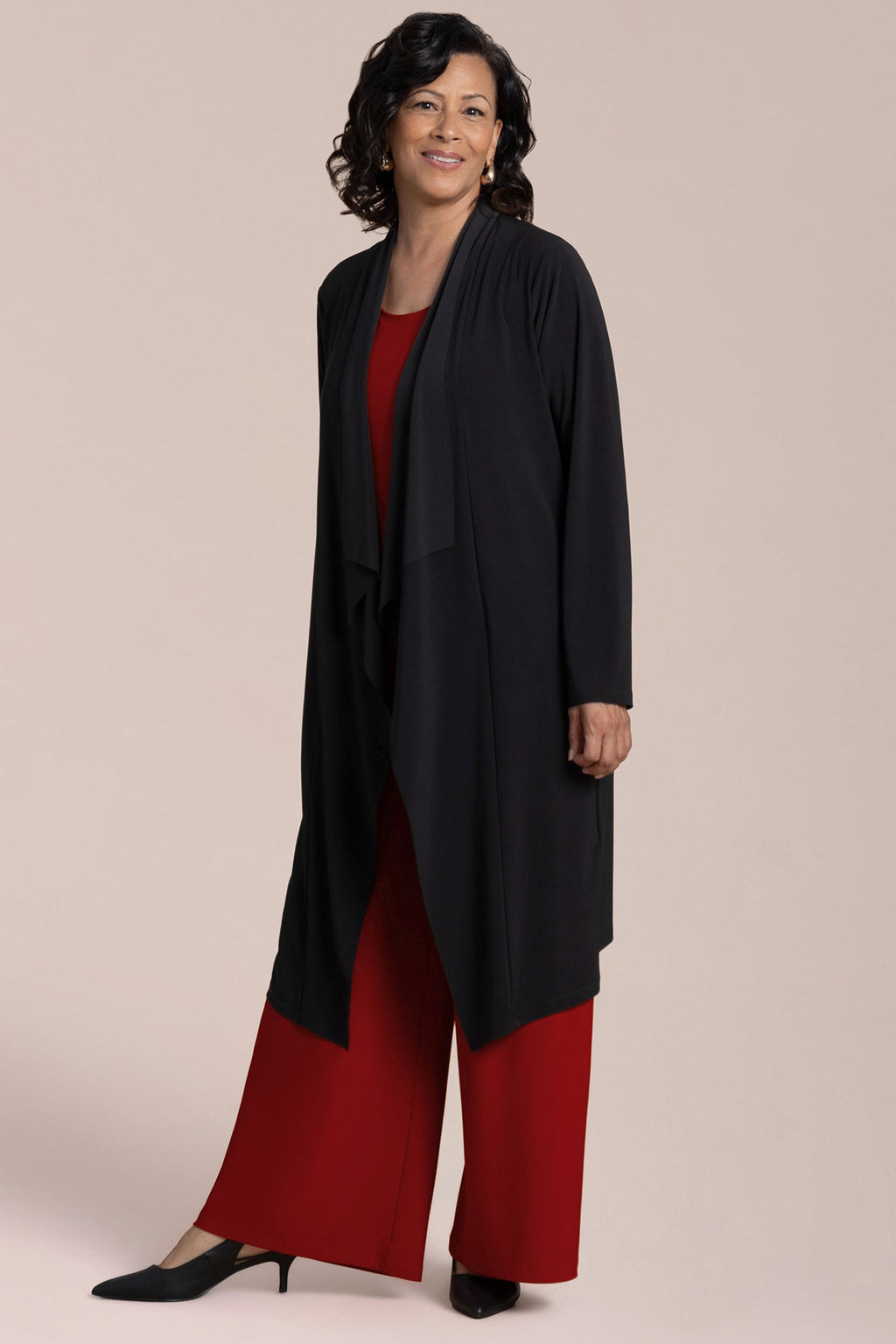 The perfect finishing layer. With its long drape and fluid silhouette, the Tempo Cover adds effortless elegance to any outfit—whether you're heading out or staying in.